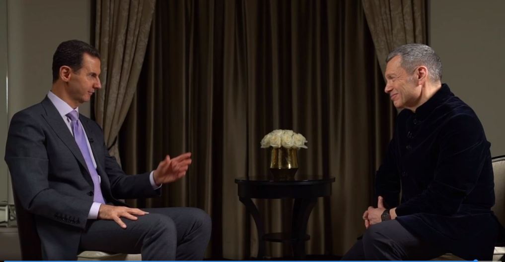Ο Πρόεδρος της Συρίας Μπασάρ αλ Άσαντ έδωσε μια ακόμη συνέντευξη σε ρώσικο έδαφος στο νο 1 της κρατικής τηλεόρασης στον Vladimir Solovyov για το τηλεοπτικό κανάλι Solovyov Live. Τα πλάνα προβλήθηκαν στο τηλεοπτικό κανάλι “Russia -1” και στην πλατφόρμα “LOOK”. Ο Άσαντ μεταξύ άλλων είπε: Κατά τη διάρκεια του πολέμου, προσπάθησαν [η Δύση] να με πείσουν να φύγω από την εξουσία, να απομακρυνθώ από τη διαχείριση εξουσίας, για να μου δώσουν προστασία: «Αν θέλεις να πάρεις υπηρέτες και χρήματα μαζί σου, δεν θα σε βάλουμε υπό σύλληψη. Φύγε μακριά.” Ίδια μέθοδος. Λοιπόν, έχασαν την ελπίδα, έκαναν αυτή την προσφορά ήδη σε απόγνωση. Συνειδητοποίησαν ότι η Συρία κατανοεί τις δυτικές μεθόδους. Δεν μπορούν να μας εξαπατήσουν. Έχουμε μεγάλη εμπειρία με τέτοιου είδους απάτες. Και έτσι σταμάτησαν αυτές τις προσπάθειες, έκοψαν τους δεσμούς. Και είναι καλύτερα για εμάς.