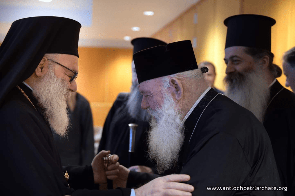 Μαζί με τον Μακαριότατο Πατριάρχη Ιωάννη Θ ήταν παρόντες: ο Μητροπολίτης Ηλίας Οντέ (Βηρυτού), ο Μητροπολίτης Σάμπα Εσμπερ (Νέα Υόρκης και Βόρειας Αμερικής), ο Μητροπολίτης Silwan Musa (Όρος Λιβάνου), ο Επίσκοπος Μούσα ο Ευνούχος, ο Αρχιμανδρίτης Γεώργιος Ιακώβ (διαχειριστής της Μονής Παναγίας του Μπαλαμάντ) και του Αρχιμανδρίτη Γεράσιμου Κάμπα. Οι Μακαριότατοι αντάλλαξαν λόγια ευγνωμοσύνης και αγάπης.Ο Πατριάρχης Youhanna X, εκ μέρους της Εκκλησίας της Αντιοχείας και των αρχιερέων και του λαού της, ευχαρίστησε τη θέση αγάπης και τη γενναιόδωρη χειρονομία της ελληνικής αντιπροσωπείας. Παρούσα η Πρέσβης της Ελλάδας, κα Κατρίνα Φουντουλάκη. Με τη σειρά του, ο Αρχιεπίσκοπος Ιερώνυμος μετέφερε μια εικόνα της αλληλεγγύης του ελληνικού λαού: της κυβέρνησης, του λαού, των οικογενειών και κάθε Έλληνα όλων των ηλικιών, απέναντι σε αυτή τη δοκιμασία και την επείγουσα ανάγκη τους να φτάσει αυτή η βοήθεια στον λαό και να είμαστε δίπλα σας σήμερα. Η Ιερά Σύνοδος της Εκκλησίας της Ελλάδος μου εμπιστεύτηκε επίσης να σας μεταφέρω την αγάπη και τις προσευχές τους σε αυτή την δύσκολη περίσταση. Με τη σειρά μου, θα μεταφέρω στους Έλληνες ότι στην Εκκλησία της Αντιόχειας, μέσα σε αυτές τις δυσκολίες και θλίψεις, είστε ενωμένοι και συνεργάζεστε.