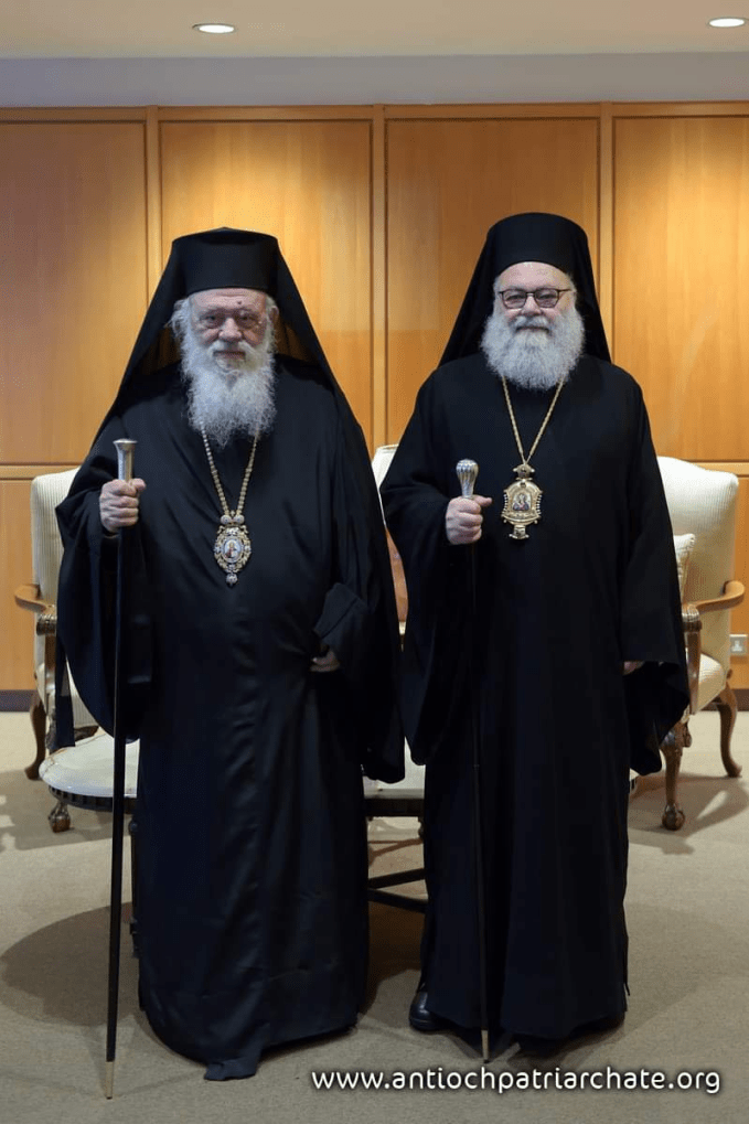 Ο Αρχιεπίσκοπος Ιερώνυμος και η συνοδεία του έφθασαν στη Συρία μέσω Λιβάνου. Υποδοχή του Έλληνα Αρχιεπισκόπου και της συνοδού αντιπροσωπείας Διεθνές Αεροδρόμιο Βηρυτού, 21 Μαρτίου 2023. Ο Μακαριότατος Πατριάρχης Ιωάννης Θ’ υποδέχτηκε τον Μακαριότατο Αρχιεπίσκοπο Αθηνών και πάσης Ελλάδος Ιερώνυμο Β’ και τη συνοδό του αντιπροσωπεία: τον Σεβασμιότατο Μητροπολίτη Συμεών Φθιώτιδας, τον Αρχιδιάκονο Ιωάννη και τον κ. Κώστα Δίμτσα, Διευθυντή της οργάνωσης «Αποστολή», με την ευκαιρία του η αδελφική επίσκεψη του Αρχιεπισκόπου στο Πατριαρχείο Αντιοχείας και πάσης Ελλάδος.