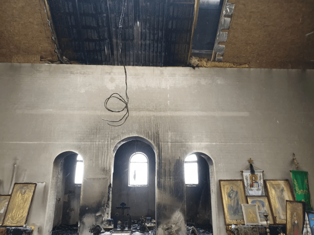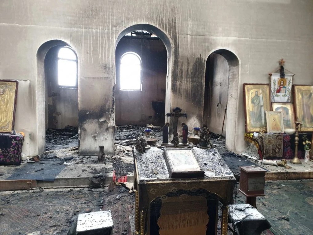 Σύμφωνα με τον αρχηγό της κοινότητας, τον ιδιοκτήτη του οικοπέδου στο οποίο χτίστηκε ο ναός, τον αρχιερέα Γεώργιο Καίσαρουκ, ο εμπρησμός διαπράχθηκε στη μία τα ξημερώματα, όταν ένα εύφλεκτο μείγμα πετάχτηκε στο ιερό: ο ιερέας ενημέρωσε αμέσως για τη φωτιά και μέσα σε μια ώρα βρισκόταν ήδη κοντά στον φλεγόμενο ναό του.