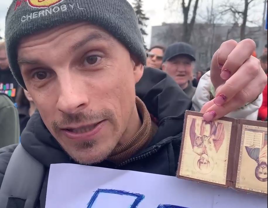 Με τις εικόνες ανάποδα διαδηλώνουν έξω από τη Λαύρα οι υπερεθνικιστές σατανιστές Ουκρανοί
