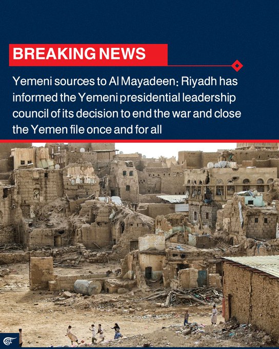Πηγές της Υεμένης για το Al-Mayadeen: Το Ριάντ ενημέρωσε το Προεδρικό Συμβούλιο ηγεσίας για την απόφασή του να τερματίσει τον πόλεμο