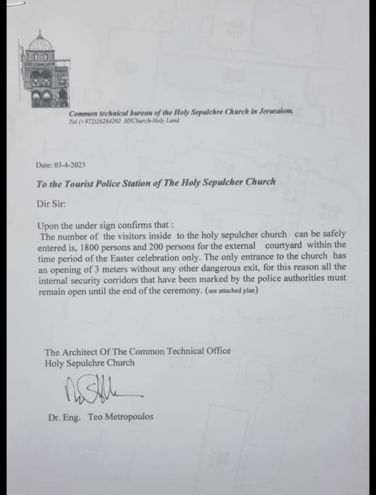 Στις 12 Απριλίου, η Επιτροπή Status Quo των Εκκλησιών στην Ιερουσαλήμ προειδοποίησε σε μια δήλωση για τους περιορισμούς της ισραηλινής αστυνομίας στη συμμετοχή στην τελετή του Αγίου Φωτός.