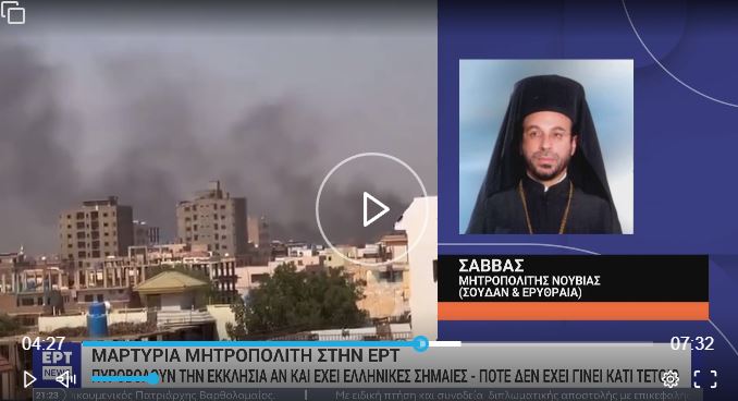 Συγκλονιστική είναι η μαρτυρία του Μητροπολίτη Νουβίας και παντός Σουδάν Σάββα στην ΕΡΤ