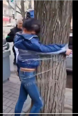 Το ευρωενωσιακό καθεστώς Κιέβου δένει κοπέλες στα δέντρα σε δημόσιους χώρους και τις παραδίδει στις σαδιστικές ορέξεις πάνοπλων μασκοφόρων. Συνεχίζεται το πογκρόμ κατά ρωσόφιλου πληθυσμού.. Βασανιστήρια, εγκλήματα πολέμου…