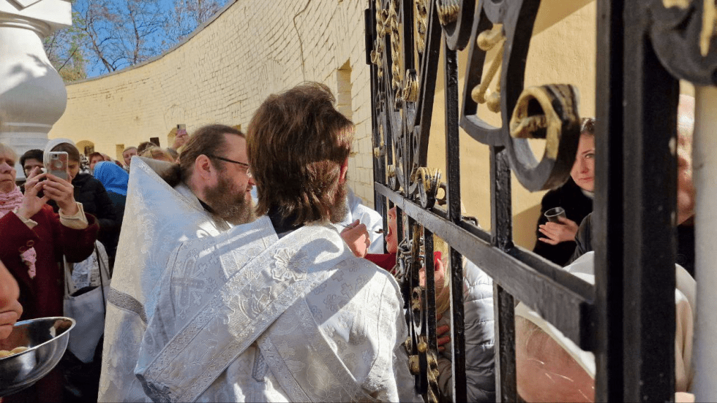 Η καθεστωτική αστυνομία έκλεισε την είσοδο στην εκκλησία στη Λαύρα των Σπηλαίων του Κιέβου ,έκλεισαν τους πιστούς έξω της Λαύρας και οι πιστοί κοινωνούσαν μέσω του κιγκλιδώματος. Μεσαίωνας…..Μετά το σφράγισμα των ναών επί κόβιντ και την απαγόρευση θείας λατρείας και του εορτασμού Πάσχα, της τέλεσης των μυστηρίων ως και της θρησκευτικής κήδευσης το Κίεβο συνεχίζει την ίδια γραμμή της δίωξης των χριστιανών και της Ορθοδοξίας με Ζελένσκι στο τιμόνι ό,τι κι αν σημαίνει αυτό.. Οι θρησκευτικές ελευθερίες στο Κίεβο παραβιάζονται με τον πιο ασύστολο τρόπο. Ούτε οι μελλοθάνατοι δεν κοινωνούν πίσω από τα κάγκελα..αναπολόγητοι οι ηθικοί αυτουργοί αυτής της τερατωδίας….