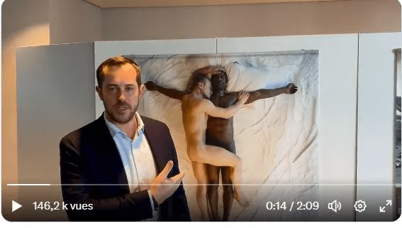 Η ΕΕ Ευρωπαική Ένωση έφτασε στην πνευματική της ολοκλήρωση. Σε εικαστικό πίνακα που παρουσιάζεται σε έκθεση στο Ευρωπαικό Κοινοβούλιο ο Χριστός εμφανίζεται ως gay, τρανς-LGBT σε στάση ανάληψης και περιστοιχιζόμενος από σαδομαζοχιστές έκφυλους ”αποστόλους” με αλυσίδες και πέτσινα φετίχ..