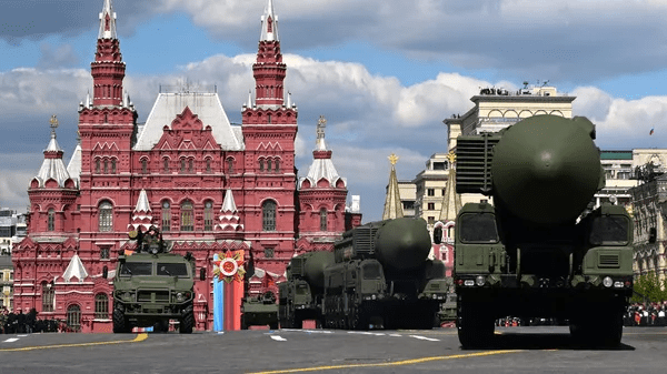 Πυραυλικοί σχηματισμοί οπλισμένοι με συγκροτήματα Yars διέρχονται από την Κόκκινη Πλατεία,
