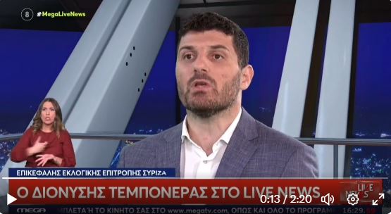 Σήμερα ο Νίκος Ευαγγελάτος είχε καλεσμένο στην εκπομπή του LIVE NEWS το γιο του Νίκου Τεμπονέρα το Διονύση που τον σύστησε ως εργατολόγο και επικεφαλή της εκλογικής επιτροπής του ΣΥΡΙΖΑ για τις επαναληπτικές εκλογές της 25ης Ιουνίου. Δεν θα μπω στην ουσία της συζήτησης ( σσ γιατί ούτως ή άλλως δεν έγινα σοφότερος) θα μείνω στα παραλειπόμενα που όμως παρουσιάζουν ενδιαφέρον..