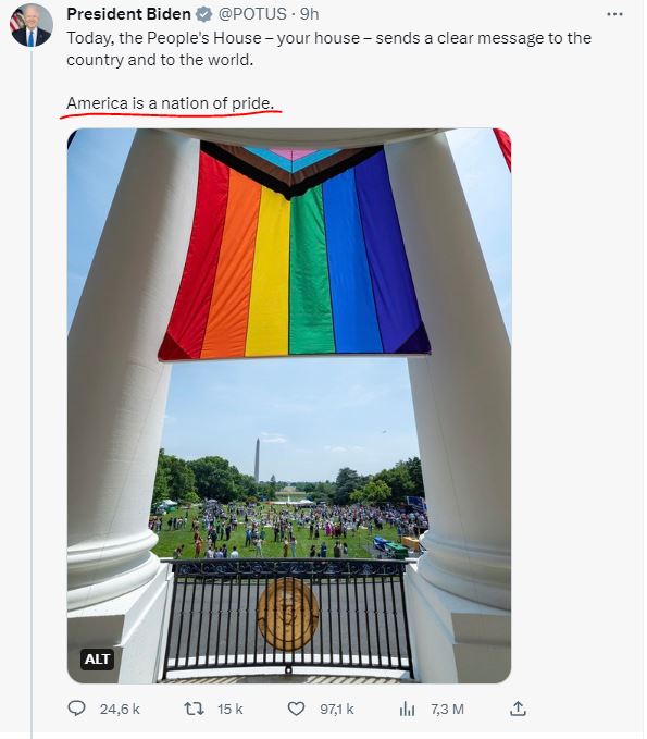Biden-Priden: ”Σήμερα, ο Οίκος του λαού ( σσ ο κομμουνίσταρος και καλά Πράιντεν) – το σπίτι σας – στέλνει ένα σαφές μήνυμα στη χώρα και στον κόσμο.