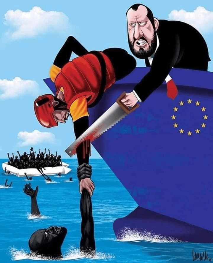 Δηλ. το είχαν εντοπίσει ήταν χωρίς διακριτικά όπως λένε τα κανάλια σίγουρα θεωρήθηκε ύποπτο κι όμως άφησαν το καρουδότσουφλο με 600 ανθρώπους στην τύχη του και τώρα παίζουν τους ανθρωπιστές. Είναι φιλάνθρωποι είναι αυτοί οι ίδιοι που τους βγάλαν στη θάλασσα της απόγνωσης αφού με πολέμους κι εμφυλίους κατέστρεψαν τις χώρες τους και τις ζωές τους..Τι θα πει ”αρνήθηκαν βοήθεια”, μπορούν να κυκλοφορούν ανεξέλεγκτα πλωτά φέρετρα στη Μεσόγειο; To σκλαβοπάζαρο και το δουλεμπόριο από την Αφρική πάλι νομιμοποιήθηκε;