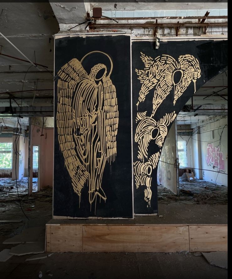 Ο πίνακας ονομάζεται “Η παρουσίαση ή η συνάντηση” και είναι της Ρωσίδας ζωγράφου Νίκα Κλιότσκι. Χρησιμοποιεί πρωτοποριακές μεθόδους βάζει την αγιογραφία μέσα στο αστικό τοπίο ανανεώνοντας και τα υλικά..την ενσωματώνει. Πολιτισμική άνθιση παρά την πολεμική που της ασκείται..