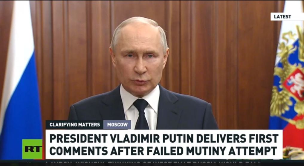 Σήμερα απευθύνω και πάλι έκκληση σε όλους τους πολίτες της Ρωσίας. Σας ευχαριστούμε για την αντοχή, την αλληλεγγύη και τον πατριωτισμό σας. Αυτή η αλληλεγγύη των πολιτών έχει δείξει ότι κάθε εκβιασμός, κάθε προσπάθεια δημιουργίας εσωτερικής αναταραχής είναι καταδικασμένη σε αποτυχία.