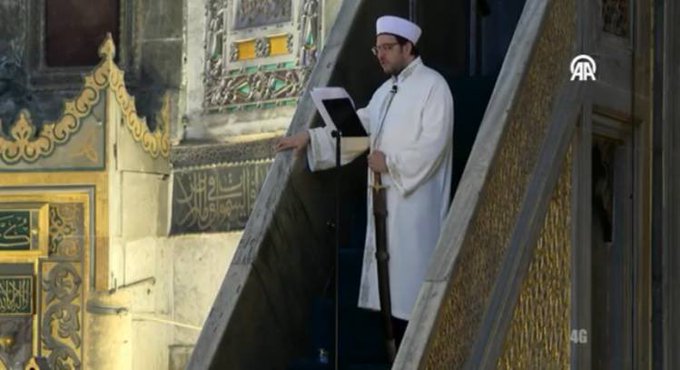 ΕΥΧΑΡΙΣΤΟΥΜΕ ΤΙΣ ΗΠΑ, ΤΟ ΝΑΤΟ, ΤΗΝ ΕΕ…Τι κάνουν οι Σύμμαχοί μας , μας πούλησαν ήδη;;; ”Κατά τη διάρκεια της προσευχής της μουσουλμανικής γιορτής Eid, ο ιμάμης του τζαμιού της Αγίας Σοφίας βγήκε με σπαθί για το κήρυγμα” αναφέρει ο τουρκικός τύπος. Οι Τούρκοι δοκιμάζουν τα εθνικά ανακλαστικά μας, τα χριστιανικά της Δύσης την ομοψυχία στην Ορθόδοξη Ανατολή αλλά και την ετοιμότητα του νέου σχήματος στο ΥΠΕΞ και στο Άμυνας. Την ώρα που ανακοινώθηκε συνάντηση Μητσοτάκη-Ερντογάν αυτοί περνούν άλλα μηνύματα..