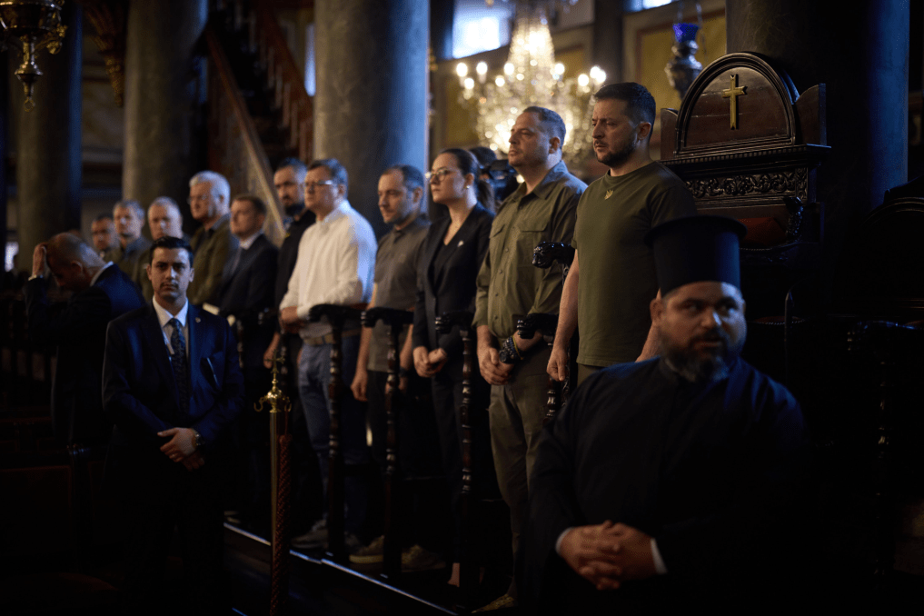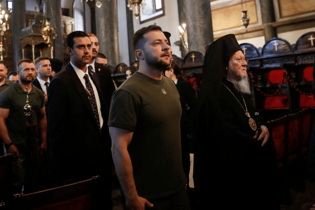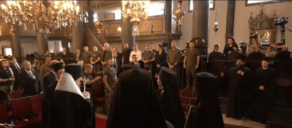 Στο Φανάρι βρέθηκε το πρωί του Σαββάτου ο Ουκρανός Πρόεδρος, Ζελένσκι ο οποίος είχε συνάντηση με τον Οικουμενικό Πατριάρχη, Βαρθολομαίο. Ο Ουκρανός πρόεδρος προσκύνησε στον Πατριαρχικό Ναό του Αγίου Γεωργίου συνοδευόμενος από τον Οικουμενικό Πατριάρχη.