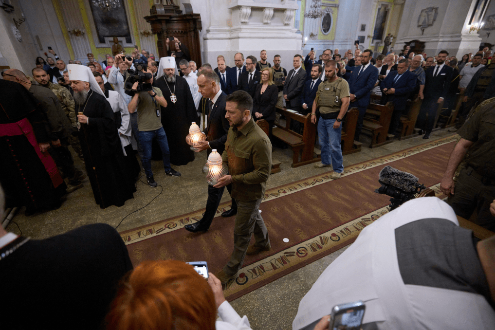 Την Κυριακή 9 Ιουλίου, ο Πρόεδρος της Ουκρανίας Volodymyr Zelensky συναντήθηκε με τον Πολωνό ομόλογό του Andrzej Duda στο Λούτσκ της Ουκρανίας. Οι ηγέτες των κρατών έφτασαν στην Καθολική εκκλησία των Αγίων Πέτρου και Παύλου που έχτισαν οι Ιησουίτες.