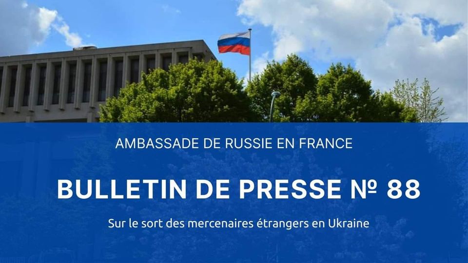 Σχετικά με ξένους μισθοφόρους στην Ουκρανία: Από την έναρξη της ειδικής στρατιωτικής επιχείρησης, συνολικά 11.675 ξένοι μισθοφόροι από 84 χώρες έχουν φτάσει στην Ουκρανία για να λάβουν μέρος στις μάχες. Οι μεγαλύτερες ομάδες προέρχονταν από την Πολωνία, τις Ηνωμένες Πολιτείες, τον Καναδά, τη Γεωργία, το Ηνωμένο Βασίλειο, τη Ρουμανία, την Κροατία, καθώς και τη Γαλλία και το ελεγχόμενο από τους Τούρκους τμήμα της Συρίας.