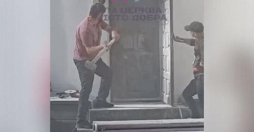 «Ιερέας»-ληστής της OCU ήταν αυτός που έσπασε με βαριοπούλα τις πόρτες του καθεδρικού ναού της Διωκόμενης Ορθόδοξης Εκκλησίας στη Μπίλα Τσέρκβα. Σε αυτή τη Ληστρική ”Εκκλησία” παρέδωσε Τόμο Αυτοκεφαλίας ο Βαρθολομαίος!