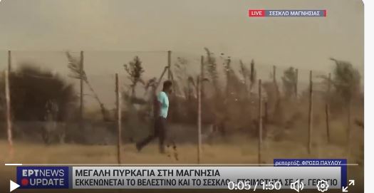 Δεν θα μπορούσε να είναι πιο προφητική και συνάμα ανατριχιαστική η δήλωση της δημοσιογράφου της ΕΡΤ, κάμερα της οποίας κατέγραψε τις τελευταίες στιγμές του 45χρονου βοσκού, ο οποίος βρήκε τραγικό θάνατο την Τετάρτη (26/07) από τη φωτιά που ξέσπασε στο Βελεστίνο και στοίχισε επίσης τη ζωή μίας ηλικιωμένης γυναίκας στην περιοχή Χοροστάσι πλησίον του Πλατάνου Αλμυρού.