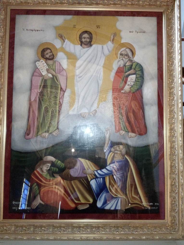 Αυτή η τριάδα είναι στον αντίποδα της τριάδας του Γολγοθά όπου ο Χριστός και πάλι σε ύψωμα εν μέσω των 2 ληστών.. Από το Πάθος στη Δόξα, και το Φως που τον περιβάλει πάλι Δόξα καλείται..