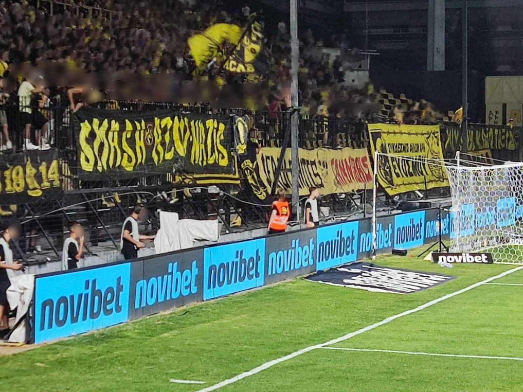 Στη Θεσσαλονίκη στο Χαριλάου οι οπαδοί του Άρη στο ματς με τη Ντιναμό Κιέβου σήκωσαν πανό: SMASH AZOV NAZIS/ ΤΣΑΚΙΣΤΕ ΤΟΥΣ ΝΑΖΙ ΤΩΝ ΑΖΟΦ! Ενώ σηκώθηκαν και σημαίες του Ντονμπάς..