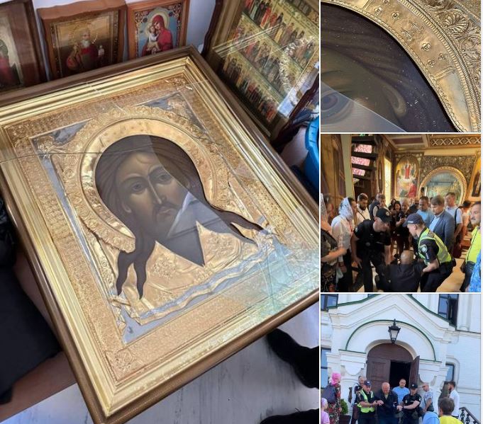 ”Ένας Ουκρανός με πέτρα επιτέθηκε στην εικόνα του Σωτήρος στον ναό τoυ Αγαπίτ των Σπηλαίων στη Λαύρα Κιέβου-Πετσέρσκ, κατάφερε να σπάσει το τζάμι της.