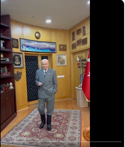 Σε ανάρτηση με λεζάντα “Η ΚΥΠΡΟΣ ΕΙΝΑΙ ΤΟΥΡΚΙΚΗ”, ο επικεφαλής του υπερεθνικιστικού MHP Devlet Bahçeli βολτάρει γύρω από το γραφείο του με στρατιωτική στολή για να υποστηρίξει την επίθεση του κατοχικού καθεστώτος του ψευδοκράτους εναντίον των ειρηνευτικών δυνάμεων του ΟΗΕ χθες στη νεκρή ζώνη στην Πύλα. Με μποτάκι γκεσταπίτικο ο εταίρος του Ερντογάν…