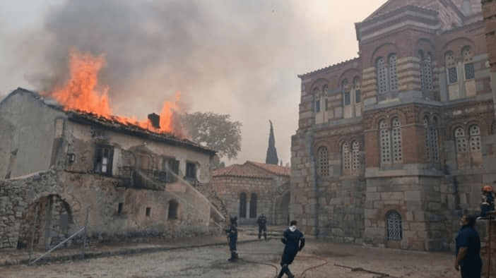Η φωτιά στο πέρασμά της έκαψε ολοσχερώς τον περίβολο του ιστορικού μοναστηριού.