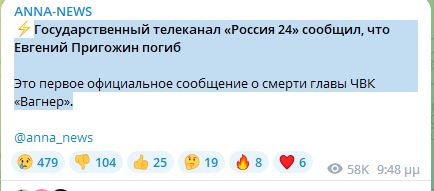 ”Ο Yevgeny Prigozhin πέθανε – πηγή Readovka” επίσημη παραδοχή από κανάλι του στο telegram.