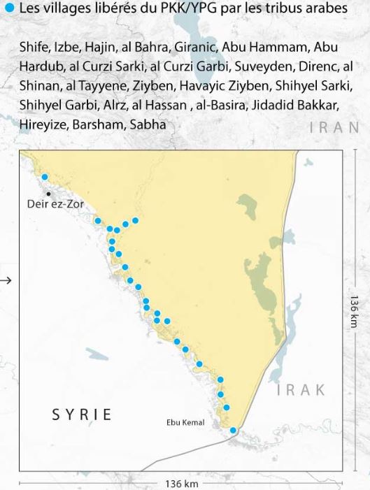 στο μεταξύ Συριακές φυλές απελευθέρωσαν τις πόλεις Diban και Al-Khawaji και 24 χωριά στο Deir ez-Zor από τις κουρδικές δυνάμεις SDF. Στη συριακή περιοχή Deir ez-Zor, αραβικές φυλές πυρπόλησαν την κατεχόμενη από ΗΠΑ πετρελαιοπηγή Azbe.