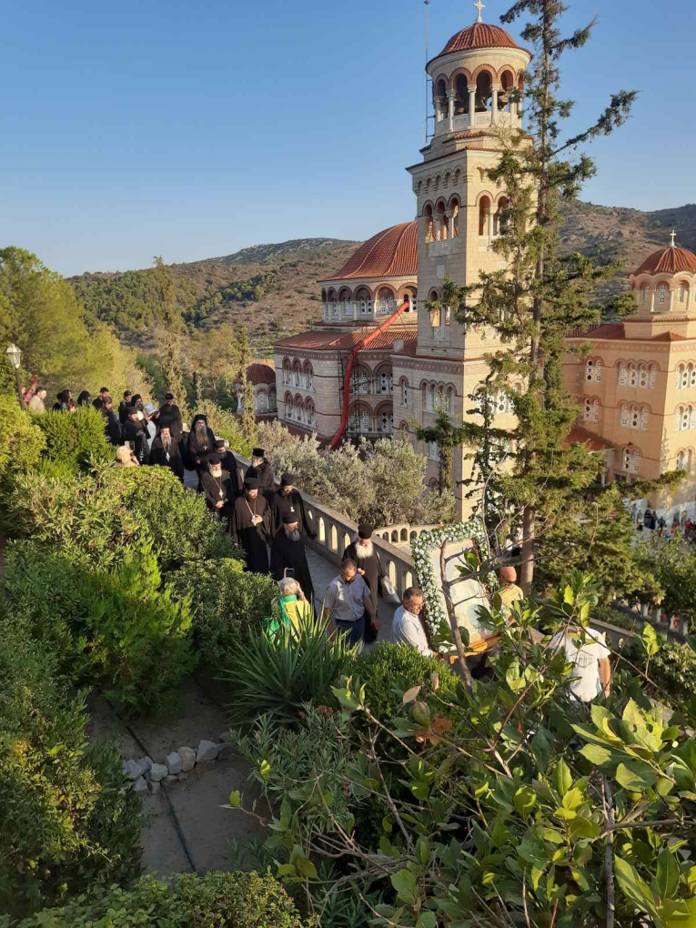 Κοσμοσυρροή από χθες στη μονή του στην Ιερά Μονή Αγίας Τριάδος (Αγίου Νεκταρίου) στην Αίγινα από Ελλάδα κι από εξωτερικό..