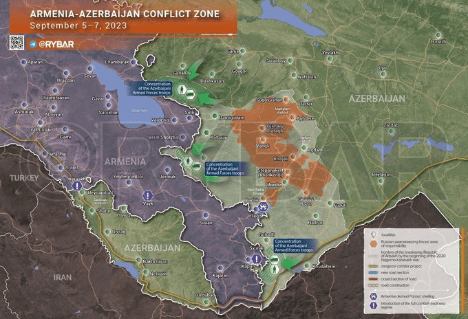 Σύμφωνα με τον ρωσικό λογαριασμό κοινωνικής δικτύωσης Rybar, ο στρατός του Αζερμπαϊτζάν θα πολεμήσει μέχρι να φτάσει στα σύνορα του 1918, παρά το Ιράν και την Αρμενία, εάν δεν ανοίξει ο Διάδρομος του Zangezur.