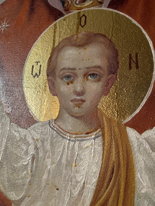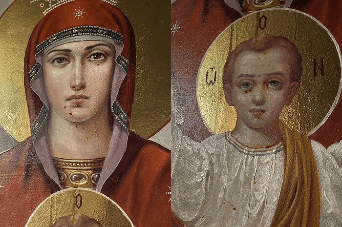 Ο ιερέας είπε ότι κόκκινο μύρο εμφανίστηκε σε μια τοιχογραφία της Μητέρας του Θεού, «Το Ακένωτον Ποτήριον», ζωγραφισμένη στον τοίχο της εκκλησίας.