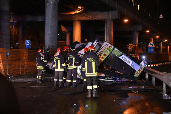 Ένα λεωφορείο έπεσε από την οδογέφυρα Vempa de Mestre στις γραμμές του σιδηρόδρομου. «Πρόκειται για μια τραγωδία τεράστιων διαστάσεων: ο προσωρινός απολογισμός κάνει λόγο για τουλάχιστον 21 θύματα και περισσότερα από 20 άτομα που νοσηλεύονται σε νοσοκομεία στην περιοχή του Βένετο, πολλοί από τους οποίους είναι σε πολύ σοβαρή κατάσταση. Δυστυχώς, στο δυστύχημα ενεπλάκησαν και κάποιοι ανήλικοι», δήλωσε ο πρόεδρος της Περιφέρειας Βένετο, Λούκα Ζάγια, ο οποίος διευκρίνισε: «Τα θύματα και οι τραυματίες είναι διαφορετικών εθνικοτήτων, όχι μόνο Ιταλοί: οι φορείς ανάσυρσης και αναγνώρισης βρίσκονται ακόμη σε εξέλιξη, πραγματοποιούνται από τους πυροσβέστες, το αρχηγείο της Αστυνομίας και τους υγειονομικούς”. Σε διευκρίνιση της δυναμικής του ατυχήματος, η Ζάια διευκρίνισε ότι “το λεωφορείο έπεσε από περίπου 10 μέτρα ύψος” από τη γέφυρα Μέστρε στη Μαργκέρα και στον αυτοκινητόδρομο Α4. «Στην πρώτη κάθοδο, το λεωφορείο, για λόγους που πρέπει να καθοριστούν, διέσχισε το στηθαίο, έπεσε και βρέθηκε ανάμεσα σε μια αποθήκη και στις ράγες του σταθμού του Μέστρε και πήρε φωτιά. Τα πρώτα θύματα που βρέθηκαν λέγεται ότι πέθαναν από απανθράκωση», κατέληξε ο πρόεδρος του Βένετο..