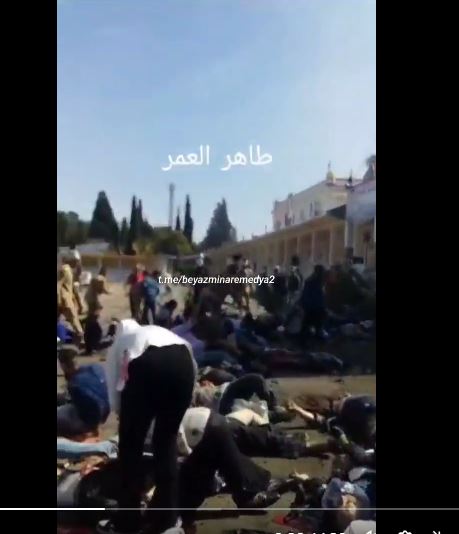 ΜΑΚΕΛΕΙΟ Μαύρη μέρα για τη Συρία και το στρατό της. 154 νεκροί και 125 τραυματίες σήμερα σε τρομοκρατική επίθεση με drones επανδρωμένα με εκρηκτικά που είχε στόχο μια τελετή αποφοίτησης δοκίμων στη Στρατιωτική Ακαδημία της Χομς. Mεταξύ των νεκρών και πολλοί στρατηγοί. Οι τρομοκράτες της Αλ Κάιντα που υποστηρίζονται από την Τουρκία βρίσκονται πίσω από την επίθεση με drones καμικάζι στο στρατιωτικό κολέγιο της Homs σήμερα. Επικράτησε πανικός κραυγές πόνου και θρήνος παντού διαμελισμένα κορμιά αίμα ποτάμι χτυπήθηκαν ως και παιδιά που ήταν στους συγγενείς ενώ κροτάλιζαν πυρά αναχαίτισης προς drones.Ο αριθμός των θυμάτων αυξάνει συνεχώς ώρα με την ώρα… Στην τελετή παραβρέθηκε ο Υπουργός Άμυνας Συρίας.