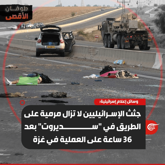 Ισραηλινά ΜΜΕ: Τα πτώματα Ισραηλινών εξακολουθούν να βρίσκονται στο δρόμο στο Σντερότ, 36 ώρες μετά την επιχείρηση στη Γάζα.