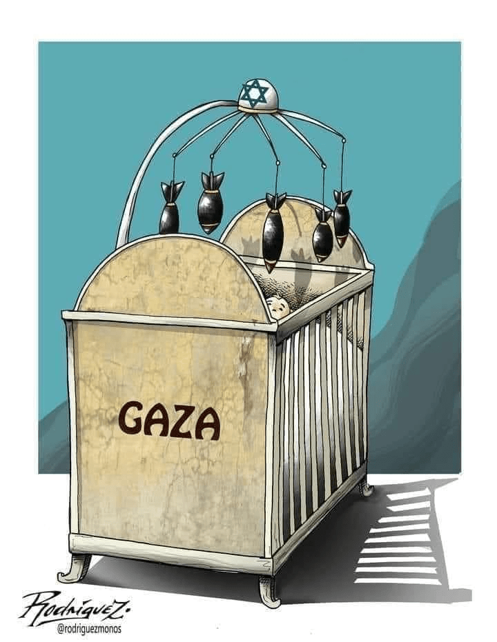 Ο Βραζιλιάνος καρτουνίστας Carlos Latuff για τη γενοκτονία στη Γάζα.. περί τα 2000 παιδιά νεκρά τα περισσότερα βρέφη..50.000 έγκυες δεν έχουν που να γεννήσουν .. πολεμούν ως και τα έμβρυα ..παιδοκτόνοι, βρεφοκτόνοι, εμβρυοκτόνοι….