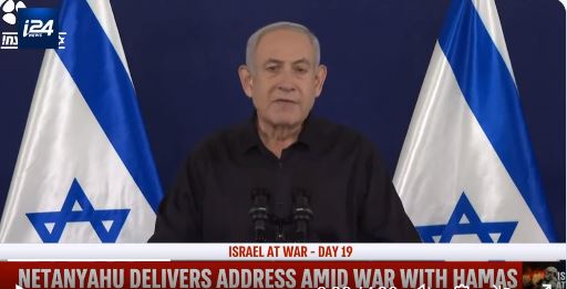 “Η Χαμάς είναι το Ισλαμικό Κράτος και το Ισλαμικό Κράτος είναι η Χαμάς. Ο πόλεμος μας εναντίον της Χαμάς είναι και ο δικός τους πόλεμος. Ο πόλεμος μας εναντίον της Χαμάς είναι μια δοκιμασία για όλη την ανθρωπότητα. Είναι ένας αγώνας μεταξύ του άξονα του κακού του Ιράν, της Χεζμπολάχ και της Χαμάς και του άξονα ελευθερίας και προόδου».