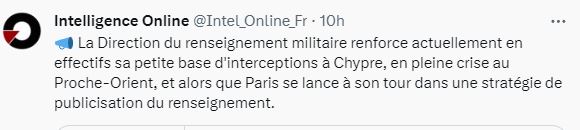 Στρατεύματα αναπτύσσονται από τη στρατιωτική υπηρεσία πληροφοριών της Γαλλίας, το DRM (Direction du Renseignement Militaire) σε μια προσπάθεια να ενισχύσει τις αναχαιτίσεις της για τη βάση SIGINT στο θέρετρο της Κύπρου στην Πάφο, για να επεκτείνει την κάλυψή της.