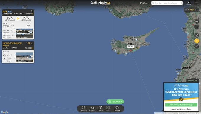 Το Boeing C-32A με τον Antony Blinken Υπουργό Εξωτερικών των ΗΠΑ Eβραίο στην καταγωγή (συνωμοσιολογίες είναι όλα) αναχώρησε από το Διεθνές Αεροδρόμιο Λάρνακας μετά από μια γρήγορη στάση στο νησί της Κύπρου. Περιόδευσε σε Ισραήλ-είχε συνάντηση και με Αμπάς, Ιορδανία και επιμένει να πάει στο Ιράκ.. Από Κύπρο έφυγε για Βαγδάτη;