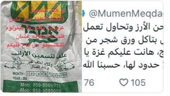 «Καθώς δεν υπάρχει αλεύρι στη Γάζα, οι άνθρωποι αλέθουν το ρύζι και προσπαθούν να φτιάξουν ψωμί από αυτό. Τρώνε τα φύλλα των δέντρων. Η Γάζα λιμοκτονεί και ο κόσμος παρακολουθεί.”