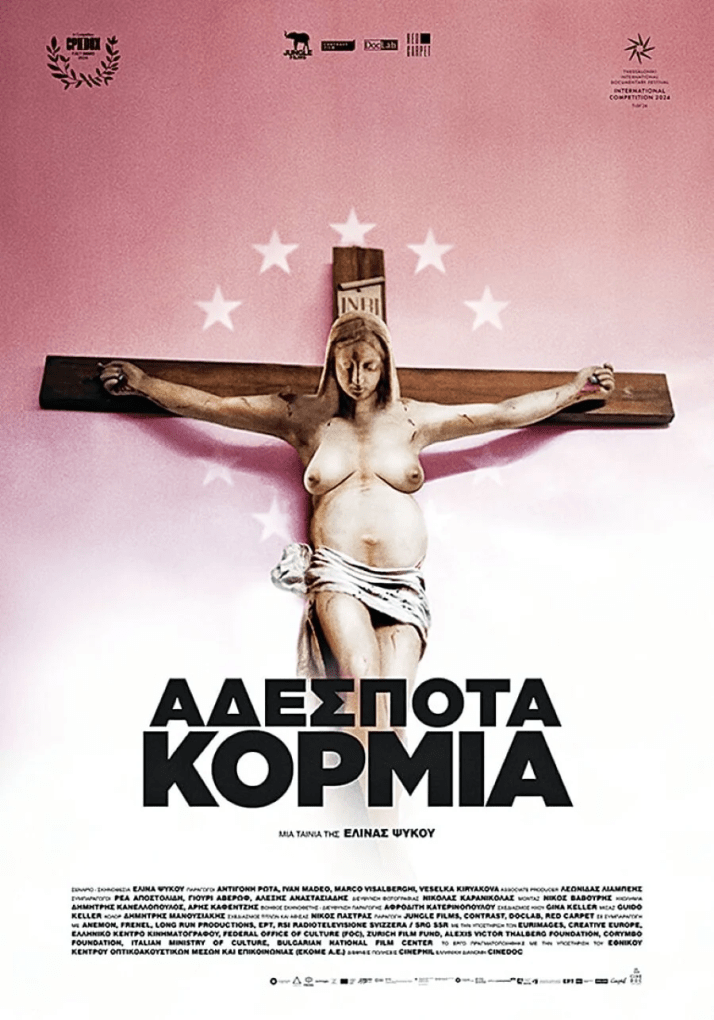 Σάλο προκαλεί αφίσα του ντοκιμαντέρ της σκηνοθέτιδας Ελένης Ψύκου, «Αδέσποτα Κορμιά», στην οποία απεικονίζεται σταυρωμένη μια ημίγυμνη έγκυος γυναίκα με πληγές στο σώμα της….. Μάχη της αφίσας κοινοί αφισοκολητές. Πάνω από την κλασική σταύρωση αφισοκόλησαν την κολλητή τους σταυρωμένη και ό,τι άλλο θέλει ο καθείς …. όλα με το μαχαίρι…