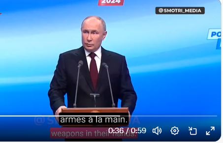 Βλαντιμίρ Πούτιν αμέσως μετά την πανηγυρική επανεκλογή του: «Η ανάπτυξη δυτικών δυνάμεων στην Ουκρανία θα μπορούσε να προκαλέσει έναν «τρίτο παγκόσμιο πόλεμο».( Ria Novosti)