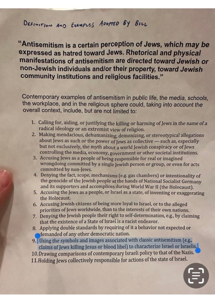Τι λέει μια Γερουσιαστής η Rep. Marjorie Taylor Greene: ”Ο αντισημιτισμός είναι λάθος, αλλά δεν θα ψηφίσω τον Νόμο Αντισημιτισμού του 2023 (H.R. 6090) σήμερα που θα μπορούσε να καταδικάσει τους Χριστιανούς για αντισημιτισμό επειδή πίστεψαν στο Ευαγγέλιο που λέει ότι ο Ιησούς παραδόθηκε στον Ηρώδη για να σταυρωθεί από τους Εβραίους.Διαβάστε το κείμενο του νομοσχεδίου και σύγχρονα παραδείγματα αντισημιτισμού όπως το 9. ”(αναφέρθηκε προηγουμένως)