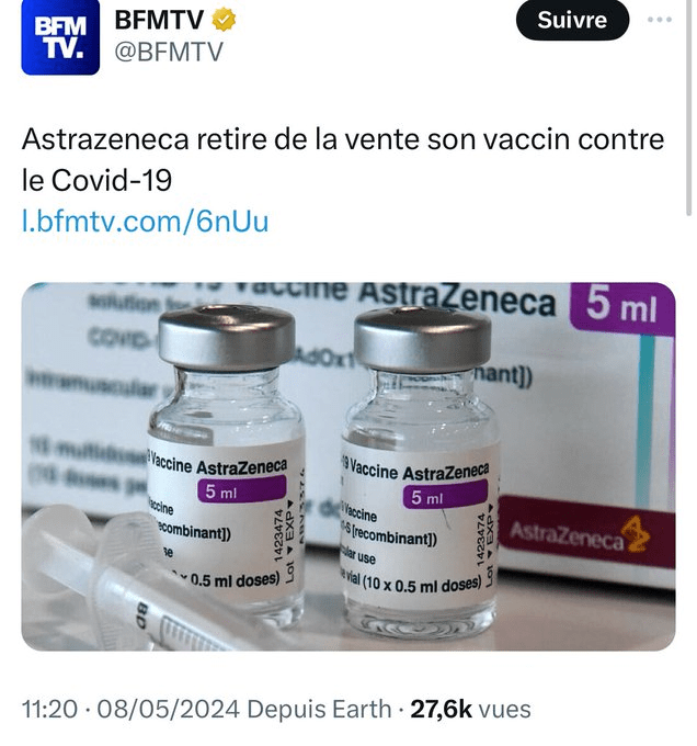 Η Astrazeneca αποσύρει το εμβόλιο της για τον Covid λόγω της «πτώσης της ζήτησης»Δύο μέρες μετά την αποκάλυψη ότι ”Η AstraZeneca παραδέχεται επίσημα ότι το εμβόλιο της κατά του Covid19 μπορεί να προκαλέσει θρόμβωση… Δυνητικά θανατηφόρες παρενέργειες!‘‘ σε δικαστήριο του Λονδίνου.
