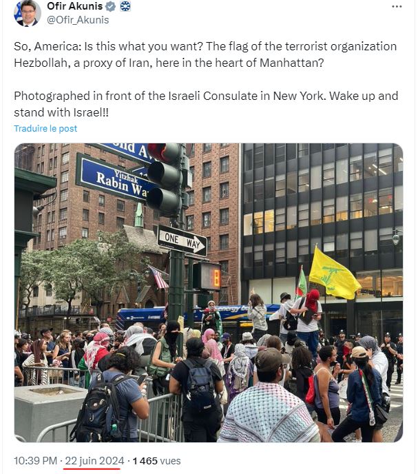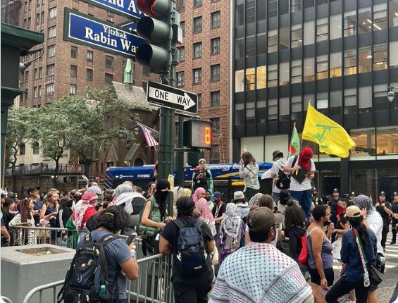 Η σημαία της Χεζμπολάχ, σηκώθηκε στην καρδιά του Μανχάταν μπροστά από το ισραηλινό προξενείο στη Νέα Υόρκη.
