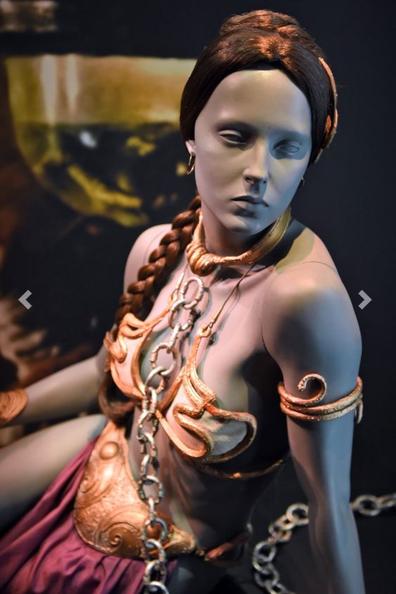 Η στολή, η οποία πωλήθηκε με τα αυθεντικά δαχτυλίδια και τα βραχιόλια της, φορέθηκε από την πριγκίπισσα Λέια που υποδύθηκε η Κάρι Φίσερ όταν αιχμαλωτίστηκε από το τέρας που μοιάζει με γυμνοσάλιαγκα (Τζάμπα Χατ) Jabba the Hutt και κρατήθηκε αλυσοδεμένη στον θρόνο του στην ταινία «Star Wars: Episode VI Return Of The Jedi» του 1983.