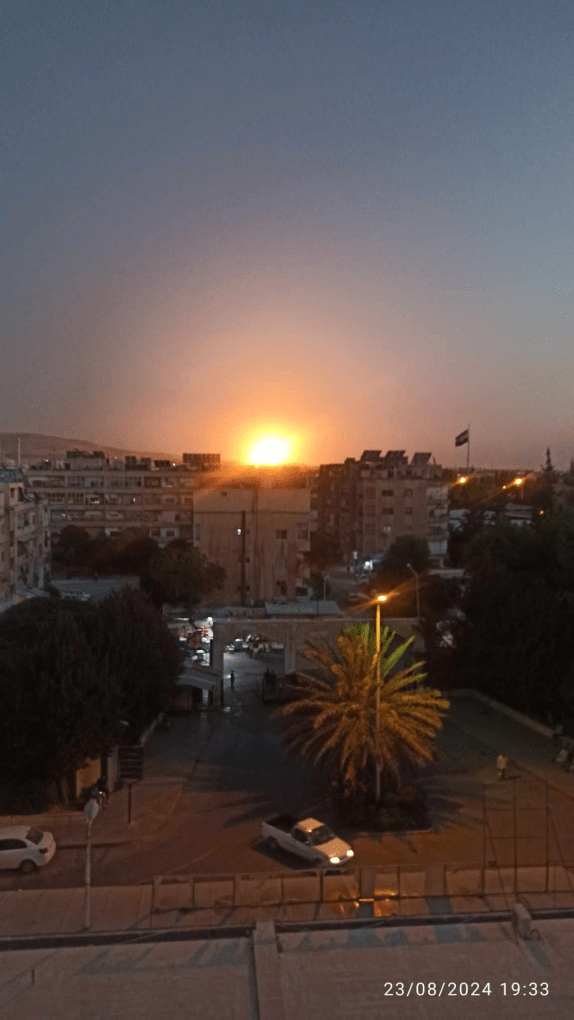 Οι ισραηλινές αεροπορικές επιδρομές στοχεύουν τοποθεσίες στο Κέντρο Επιστημονικών Ερευνών στο Jabal Maarin, νότια της Hama, και τις αποθήκες της 47ης Ταξιαρχίας της Ενδέκατης Μεραρχίας και το Κτηνιατρικό Κολλέγιο, ανατολικά της πόλης Khattab στη βόρεια ύπαιθρο της Χάμα .