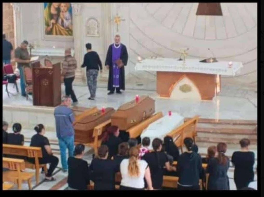 Κηδεία των χριστιανών- Samih Saeed, της συζύγου του και του γιου τους, του μέλους των Δυνάμεων Εσωτερικής Ασφάλειας, Fadi Saeed, που δολοφονήθηκαν σε επίθεση του ισραηλινού στρατού που είχε στόχο το σπίτι τους τα ξημερώματα σήμερα.