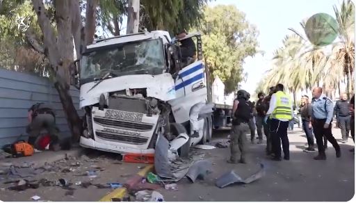 Ζωντανά από το Al-Hadath: Ισραήλ.. 5 νεκροί και 50 τραυματίες, μεταξύ των οποίων 20 στρατιώτες, στο μεγαλύτερο δυστύχημα σε σταθμό λεωφορείων κοντά στη βάση Glilot, βόρεια του Tel Aviv. Όλοι οι τραυματίες είναι στρατιώτες της Μονάδας Στρατιωτικών Πληροφοριών (8200) της βάσης Glilot κατά άλλα μέσα. Ως δράστης κατηγορείται ο οδηγός του φορτηγού ο Rami Natur Ισραηλινός Άραβας από την Kalanseva αναφέρουν άλλες πηγές. Αντίθετα τα ισραηλινά μέσα μιλούν για 5 σε κρίσιμη κατάσταση και περί τους 40 τραυματίες συνολικά που διακομίστηκαν στα νοσοκομεία. Η αστυνομία: ένα λεωφορείο σταμάτησε στο σταθμό για να αφήσει τους επιβάτες κοντά στη βάση Gillot. Το φορτηγό χτύπησε το λεωφορείο και τους επιβάτες που ήταν όρθιοι στη στάση..Η ενέργεια θεωρήθηκε εσκεμμένη και ο οδηγός εξουδετερώθηκε με πυρά από τους παριστάμενους πολίτες που οπλοφορούν..Και το συνεργείο του MEGA που ήταν στον τόπο του επεισοδίου μιλάει για 6 νεκρούς και 50 τραυματίες ενώ το συμβάν έγινε σε περιοχή με στρατιωτικές βάσεις.